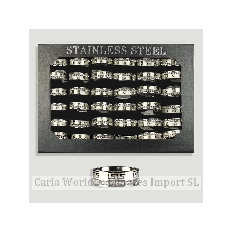 Anillo de acero. Modelo circonita y cenefa. Precio por anillo. Mínimo 36. Envío en cajas de 36 anillos en caja con tapa