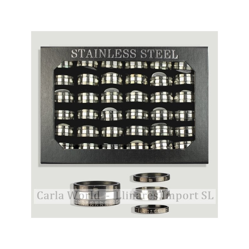 Anillo de acero. Modelo calendario. Precio por anillo. Mínimo 36. Envío en cajas de 36 anillos en caja con tapa