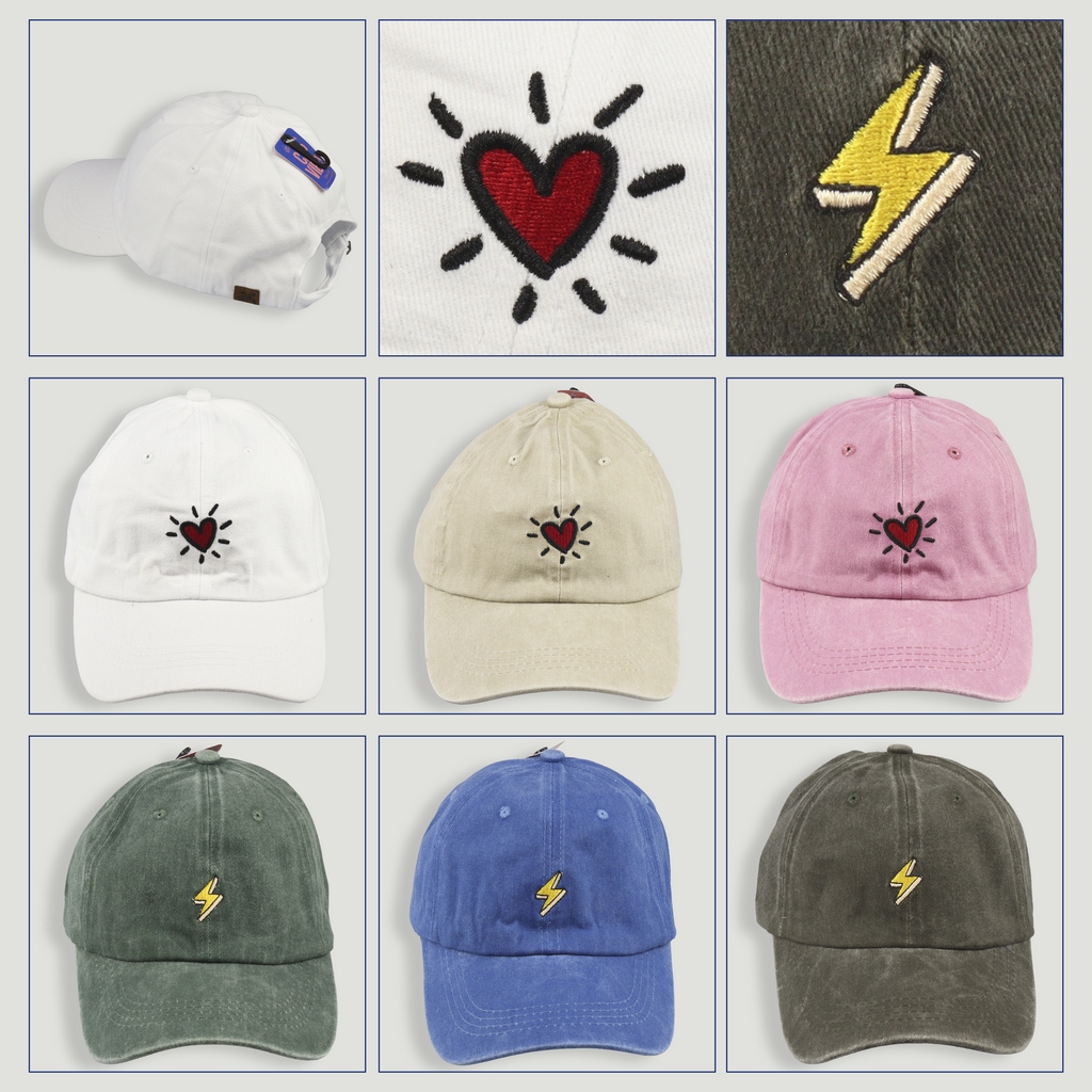 Product: Assorted color cap. 2 models per hook. Embroidered design.