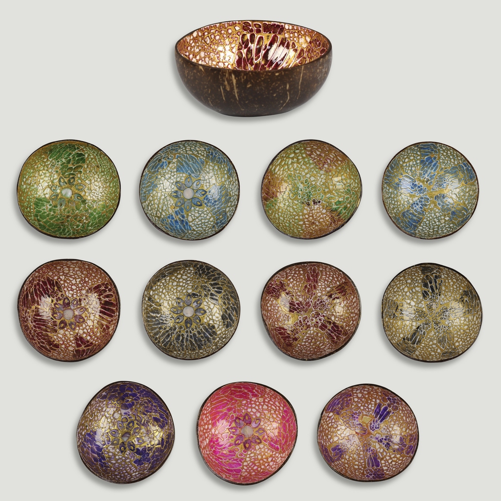 Material: coconut on the exterior, mother-of-pearl inlay interior.