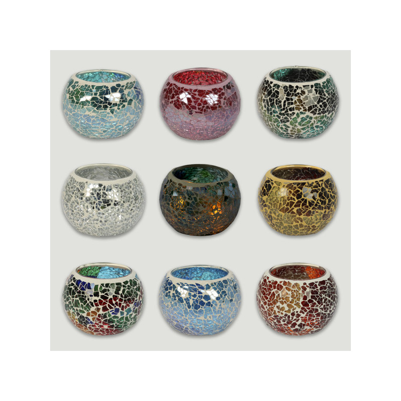 Portavelas mosaico multicolor 8,5x8,5x6cm. Precio por unidad. Mínimo y envío 8 unidades.