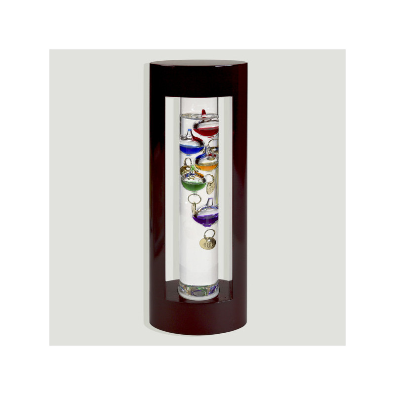 Galileo glass thermometer with wooden stand. 9x23cm