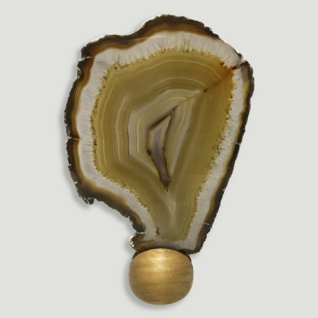 Model: Thin slab mounted on a natural wooden base.