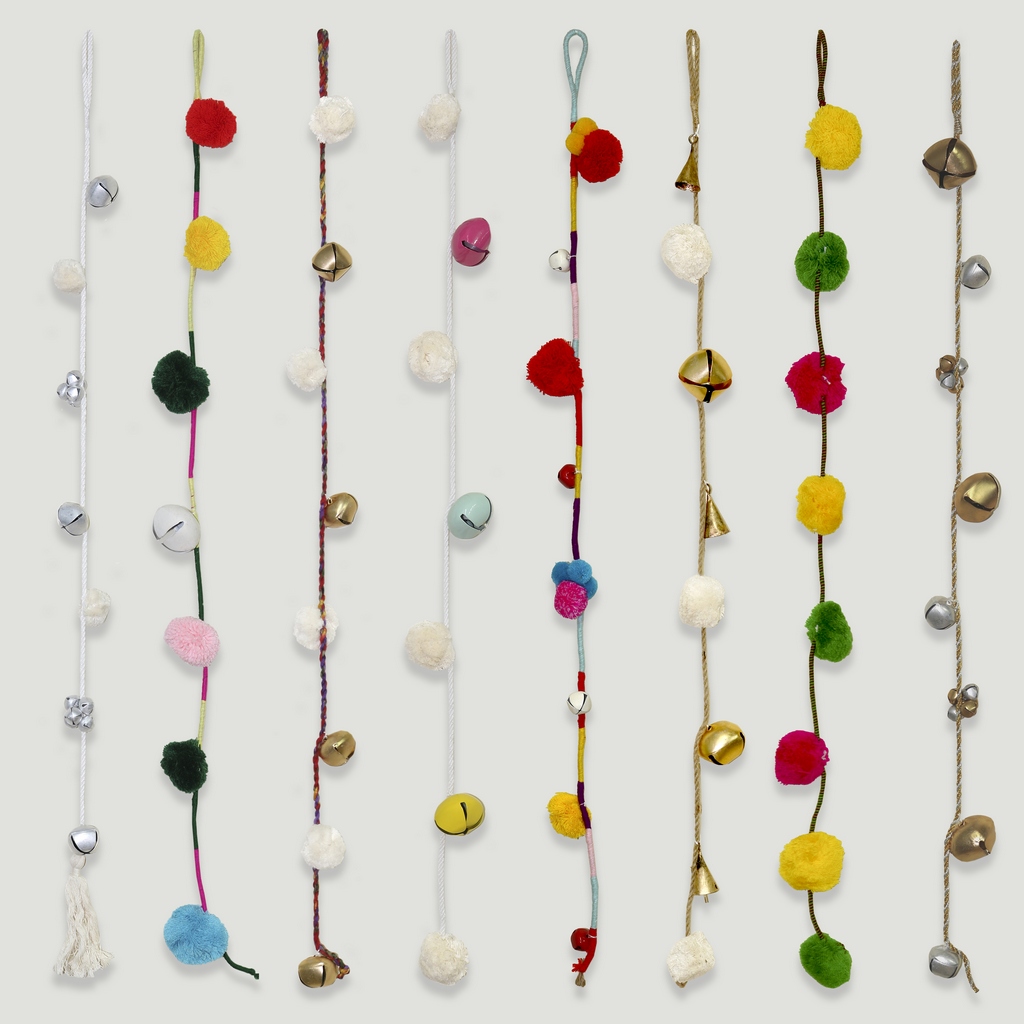 Móvil India cuerda, pompón y campanas. Modelos surtidos. 80cm