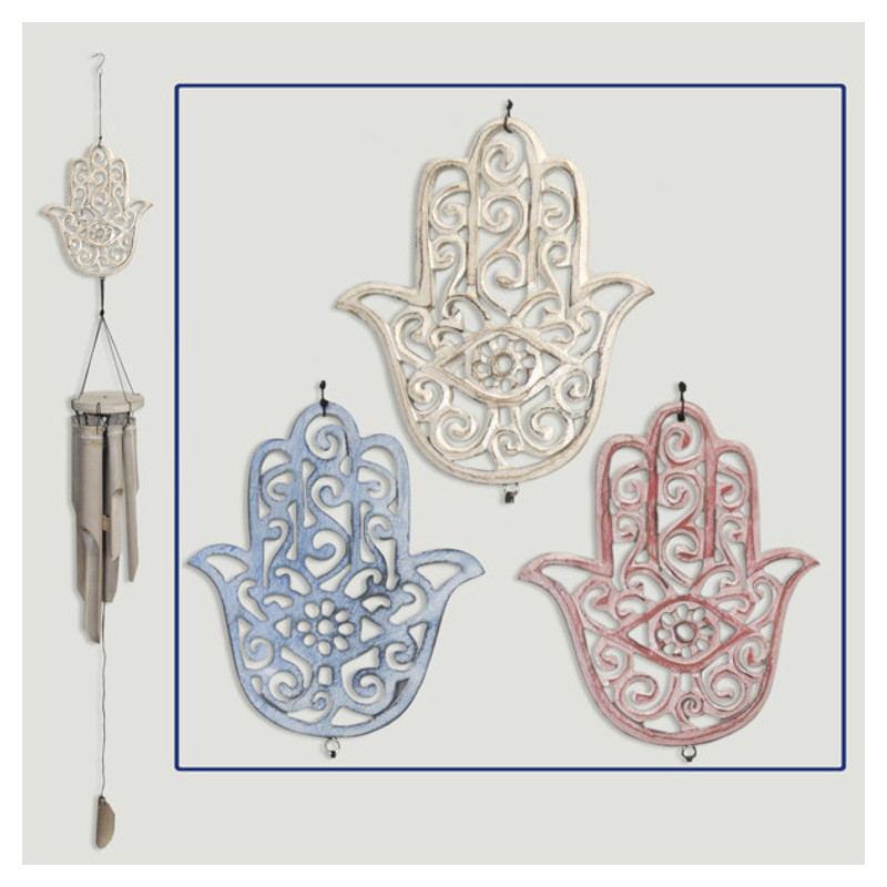 Bamboo mobile. Fatima Hand Plate with 30cm tubes. Assorted colors. 65cm