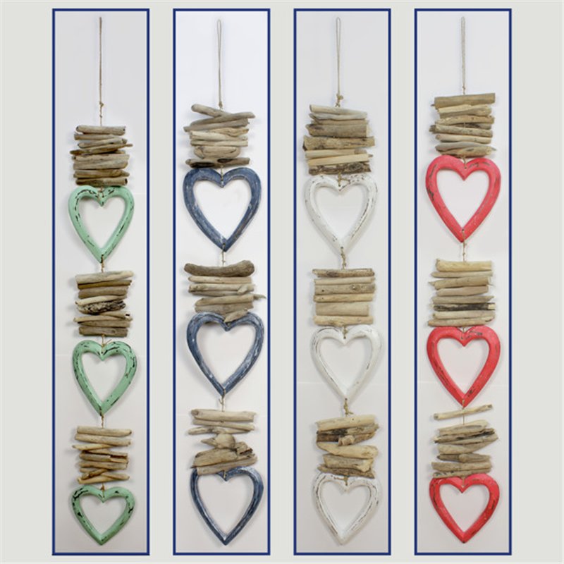 Wooden mobile 3 heart with trunks. Assorted colors. 100cm