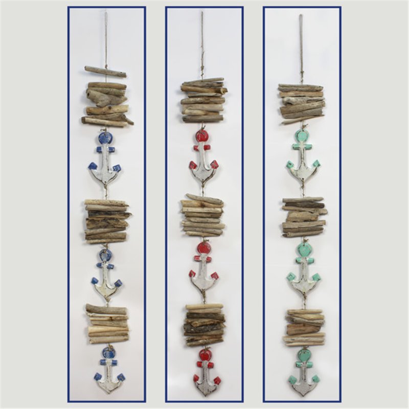 Wooden mobile 3 anchors with trunks. Assorted colors. 100cm