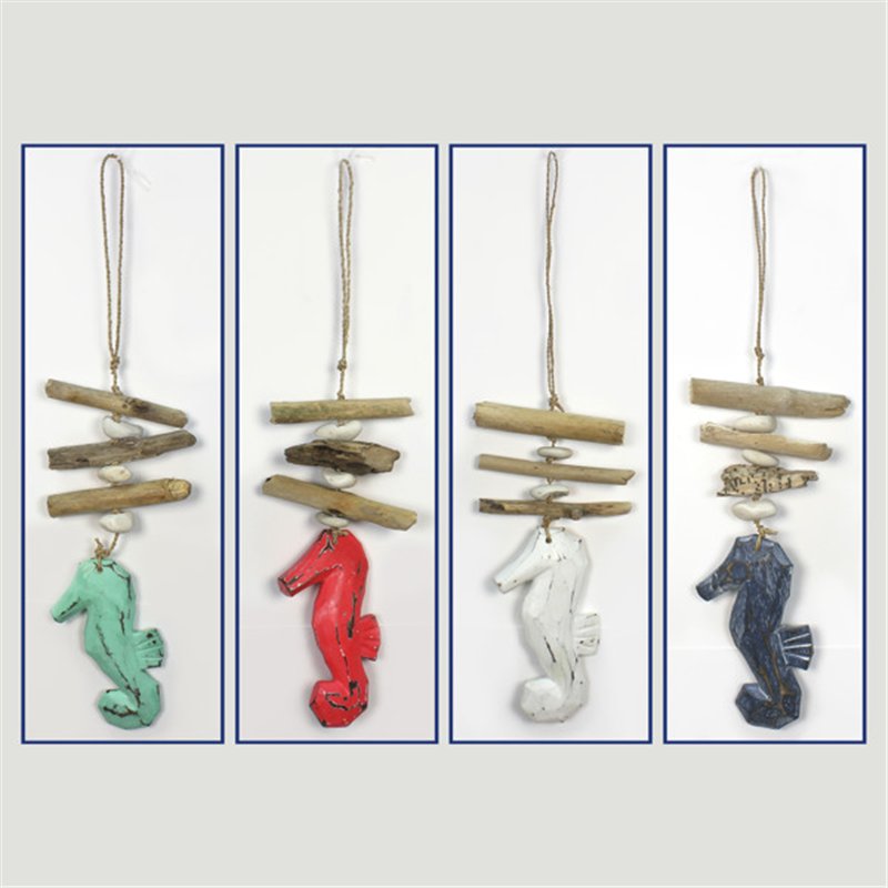 Wooden mobile 1 seahorse with trunks. Assorted colors. 35cm