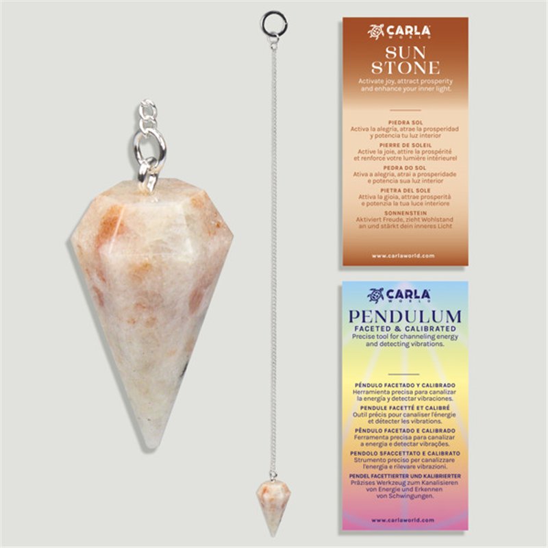 Calibrated faceted pendulum. Sunstone. 18x35 mm