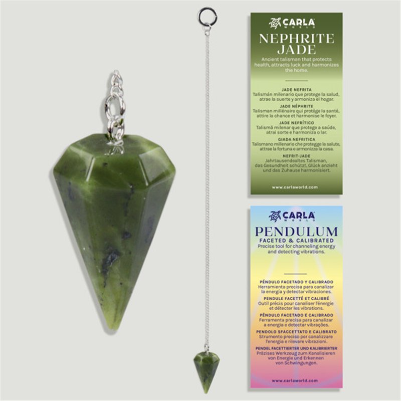 Calibrated faceted pendulum. Nephrite Jade. 18x35 mm
