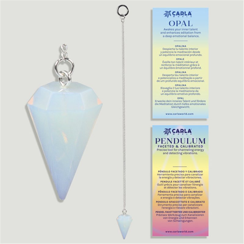 Calibrated faceted pendulum. Opalite. 18x35 mm