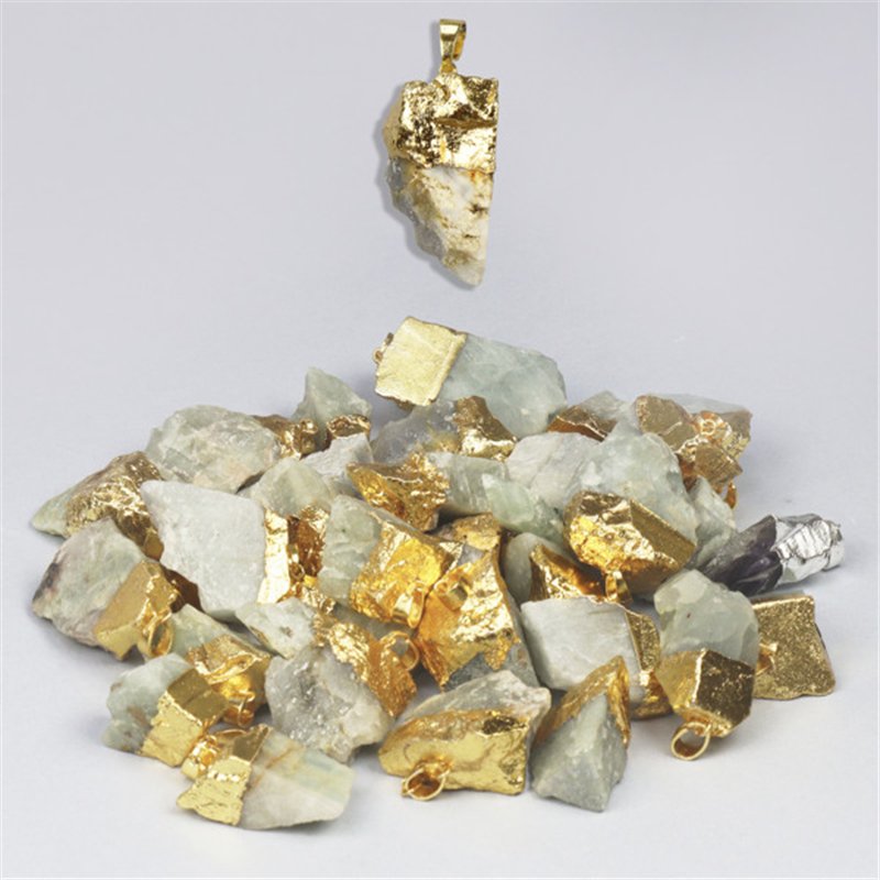 Raw Amazonite pendant, gold electroplated.