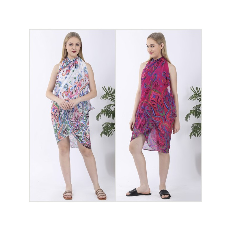 Style: Chiffon Sarong 100x180 cm approx. Cross-over neck, tied at the nape of the neck, and with a semi-open back.