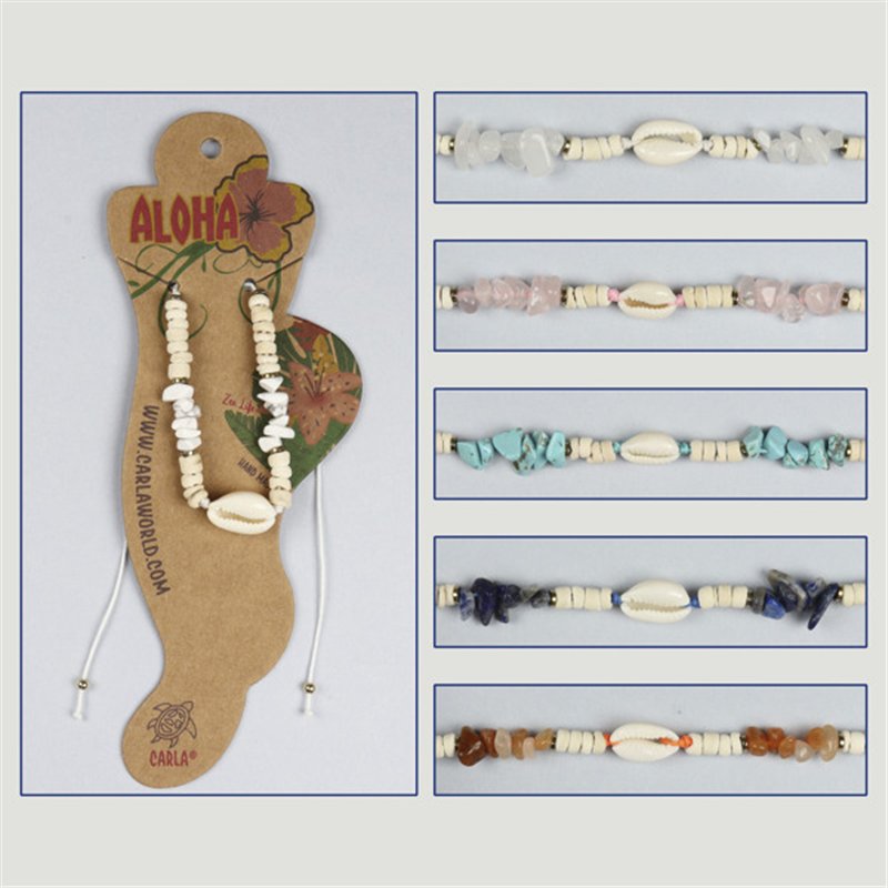 Modelo: Cypraea + Mineral.Producto: Tobillera ajustable.