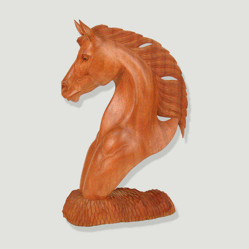 Producto: Cabeza caballo madera. Tallada.