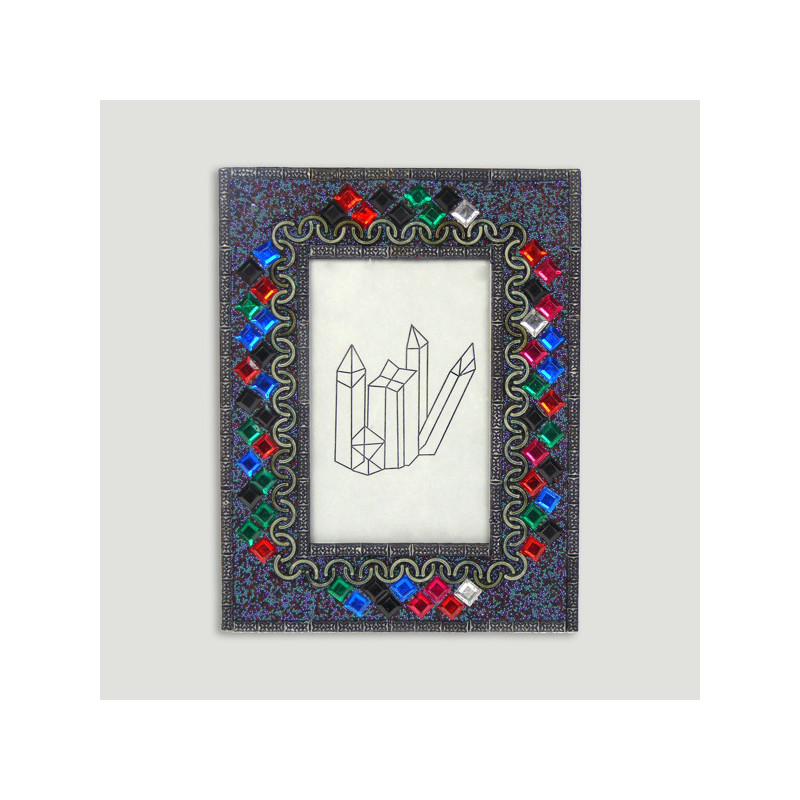 Marco de purpurina de colores y decoraciones con botos. Colores surtidos. Venta mínima 3 unidades surtidas. Envío en embalajes de 3uds.