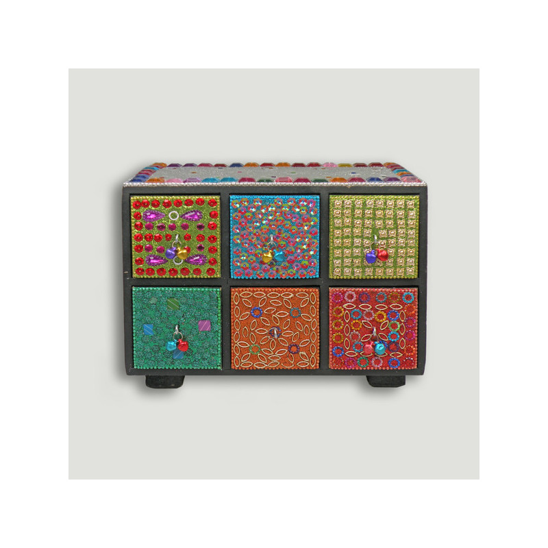 Caja decorativa 6 cajones. Colores surtidos. 21x16cm