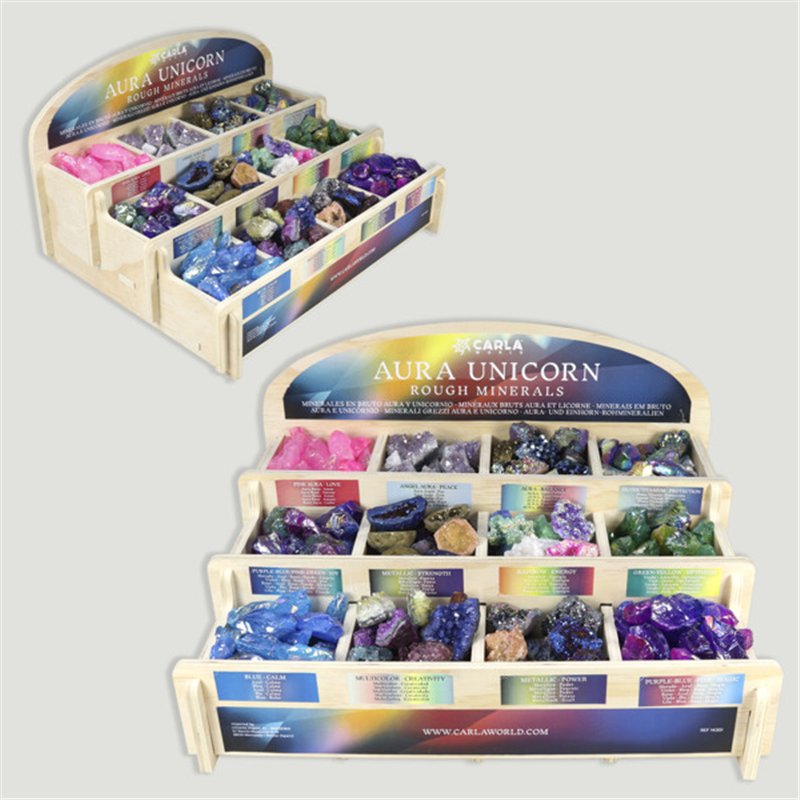 AURA UNICORN. Expositor madera con Unicorn bruto. 360 uds