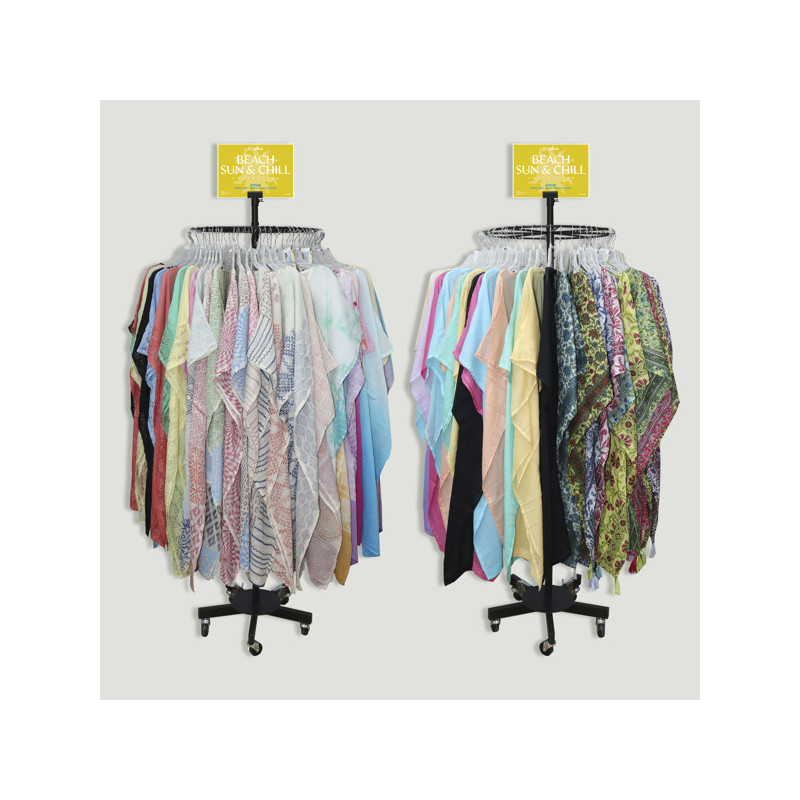 BEACH, SUN & CHILL. Expositor con 120 Ponchos Algodón