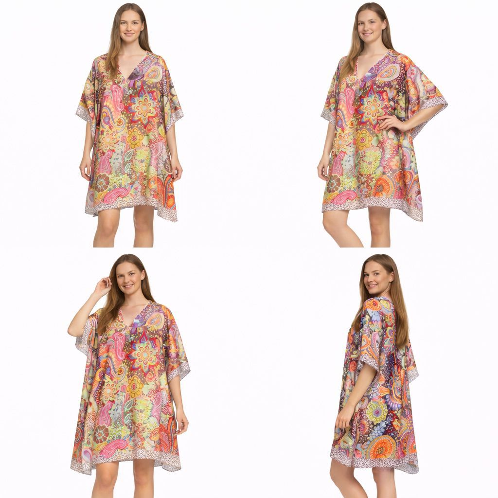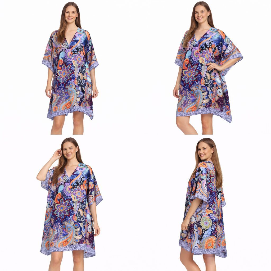 Poncho 100% Polyester, acabado sedoso. Cuello en forma de V. Talla única - 2 colores