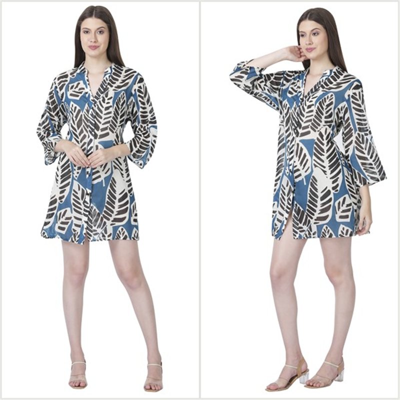 Estilo:Túnica algodón con 3 estampados. Botones delanteros y botón en manga tres cuartos.