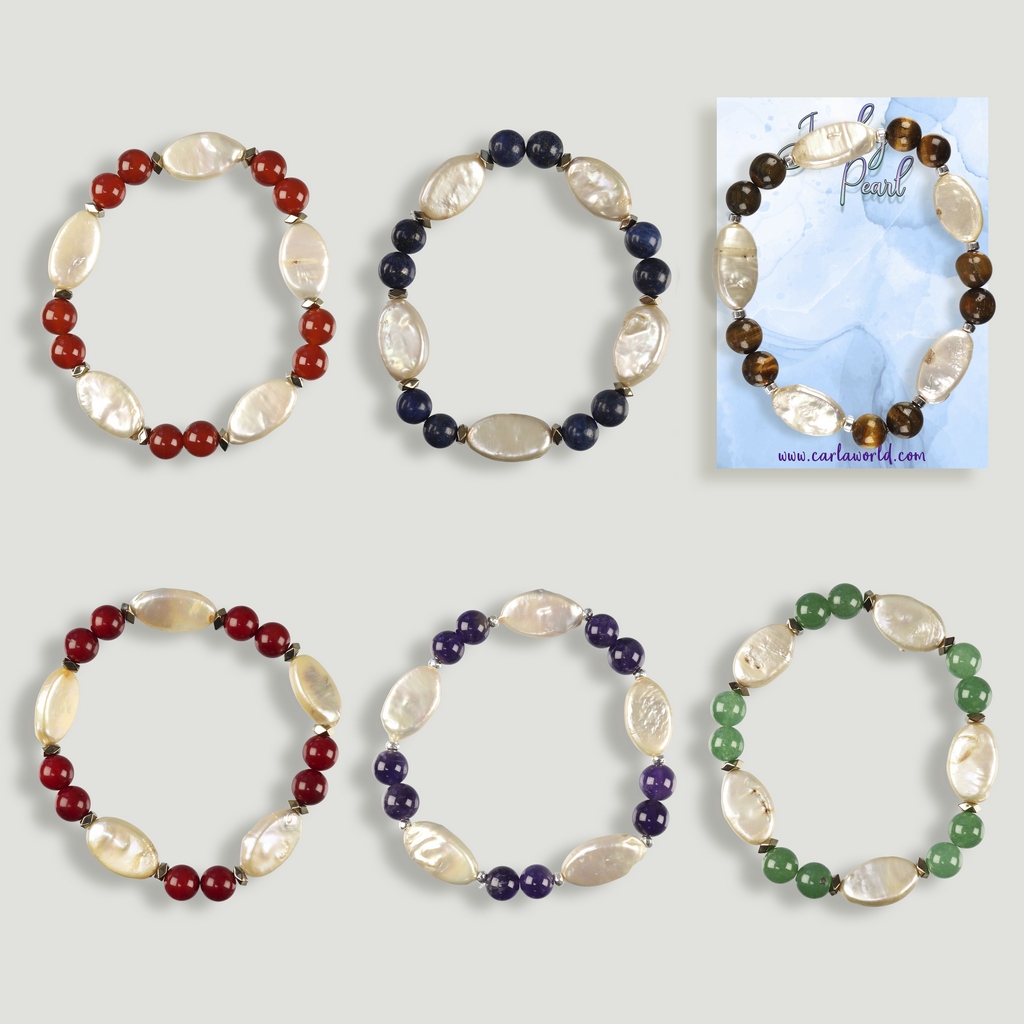 Pulsera. Duo. Perla y minerales surtidos
