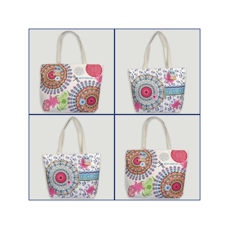 Bolsa de playa, asa lisa. Modelo Mandalas