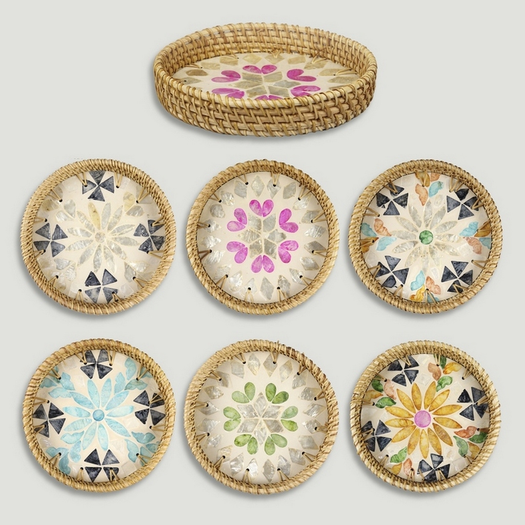 Material: Bambú + ratán con nácar.