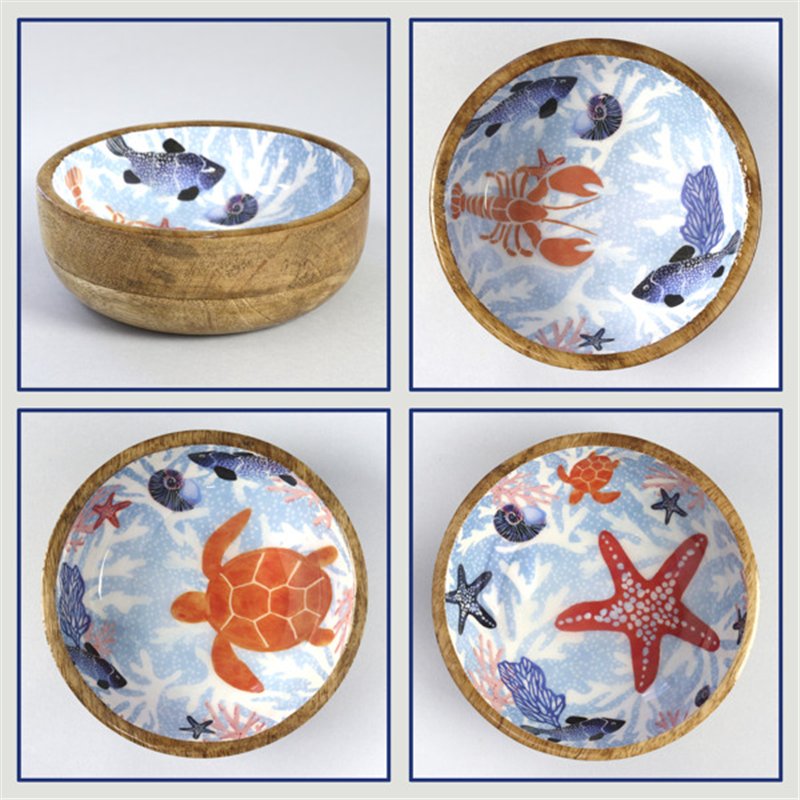 Bol madera mango con esmalte. Modelo marino. 13x5cm