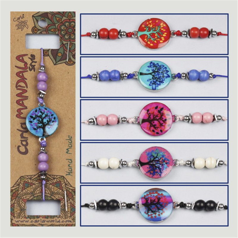 RUEDA 2 (Pulseras ajustable hilo. Abalorio silver plated).
