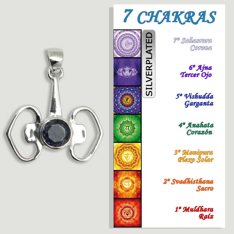 CHAKRA. Colgante PLATA. Doble corazón. Gema facetada