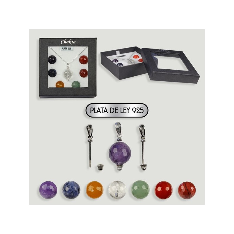 CHAKRA. Colgante PLATA. Bola facetada7 minerales