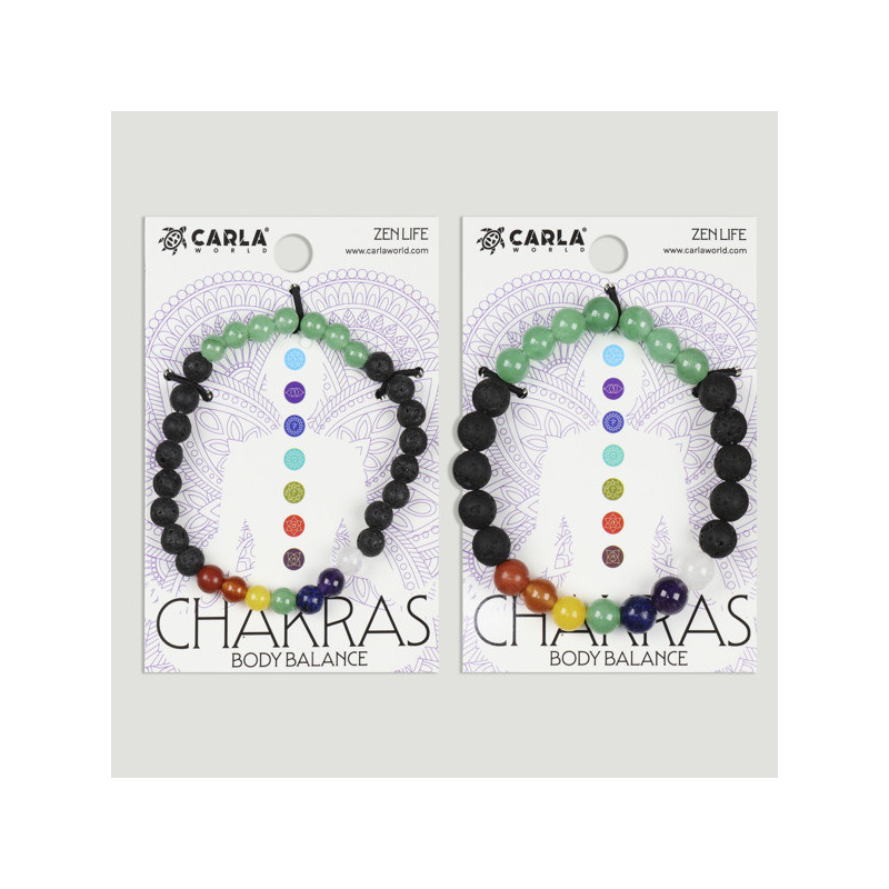 Pulsera CHAKRA. 07. Lava + 7 chakras + Aventurina verde