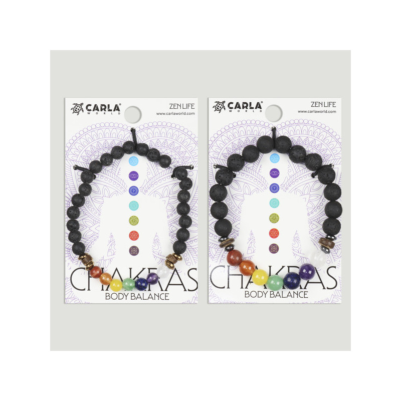Pulsera CHAKRA. 10. Lava + 7 chakras + Hematite con coco
