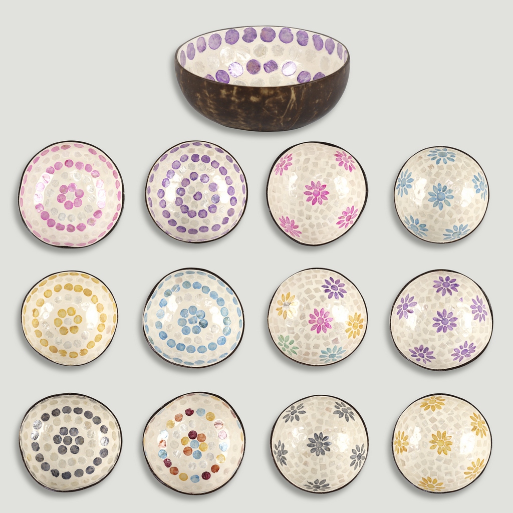 Bol Coco + nácar. Modelo flores/topos. 13x5cm