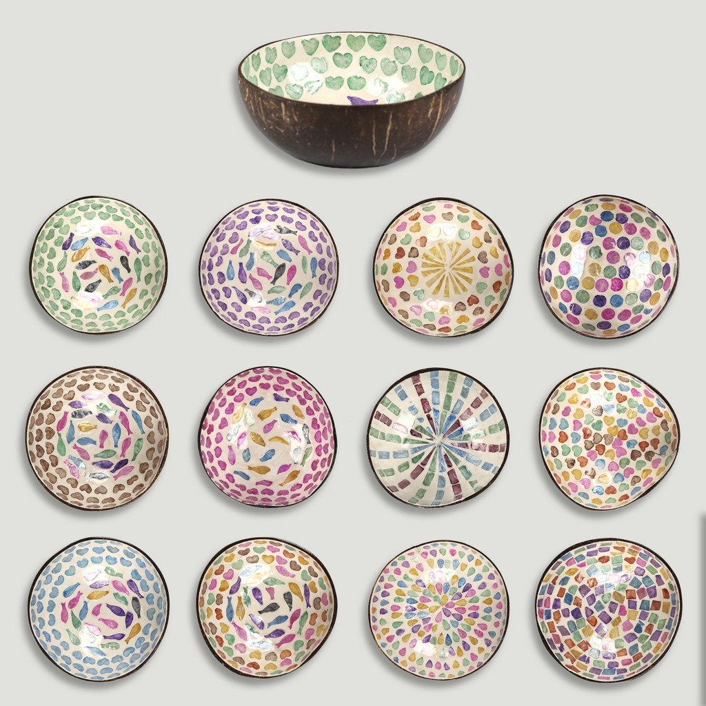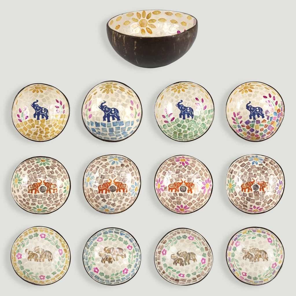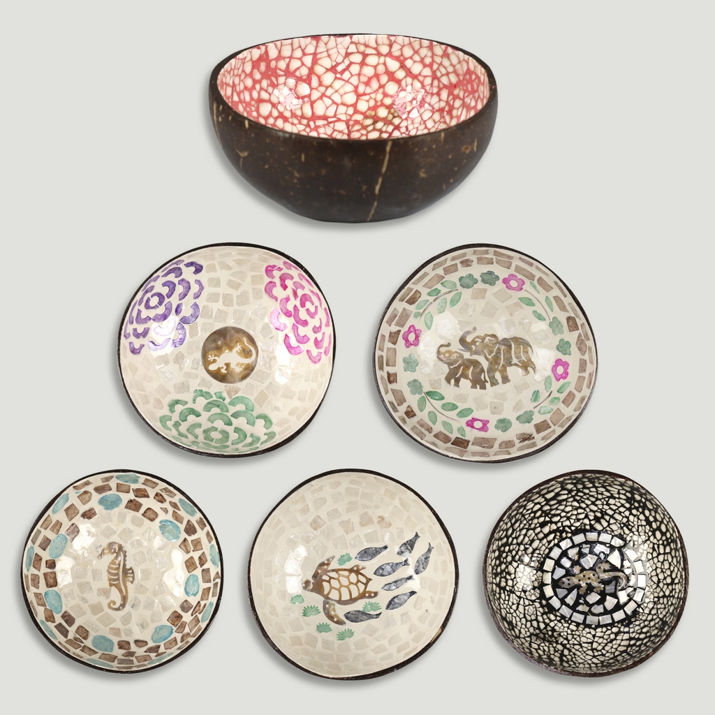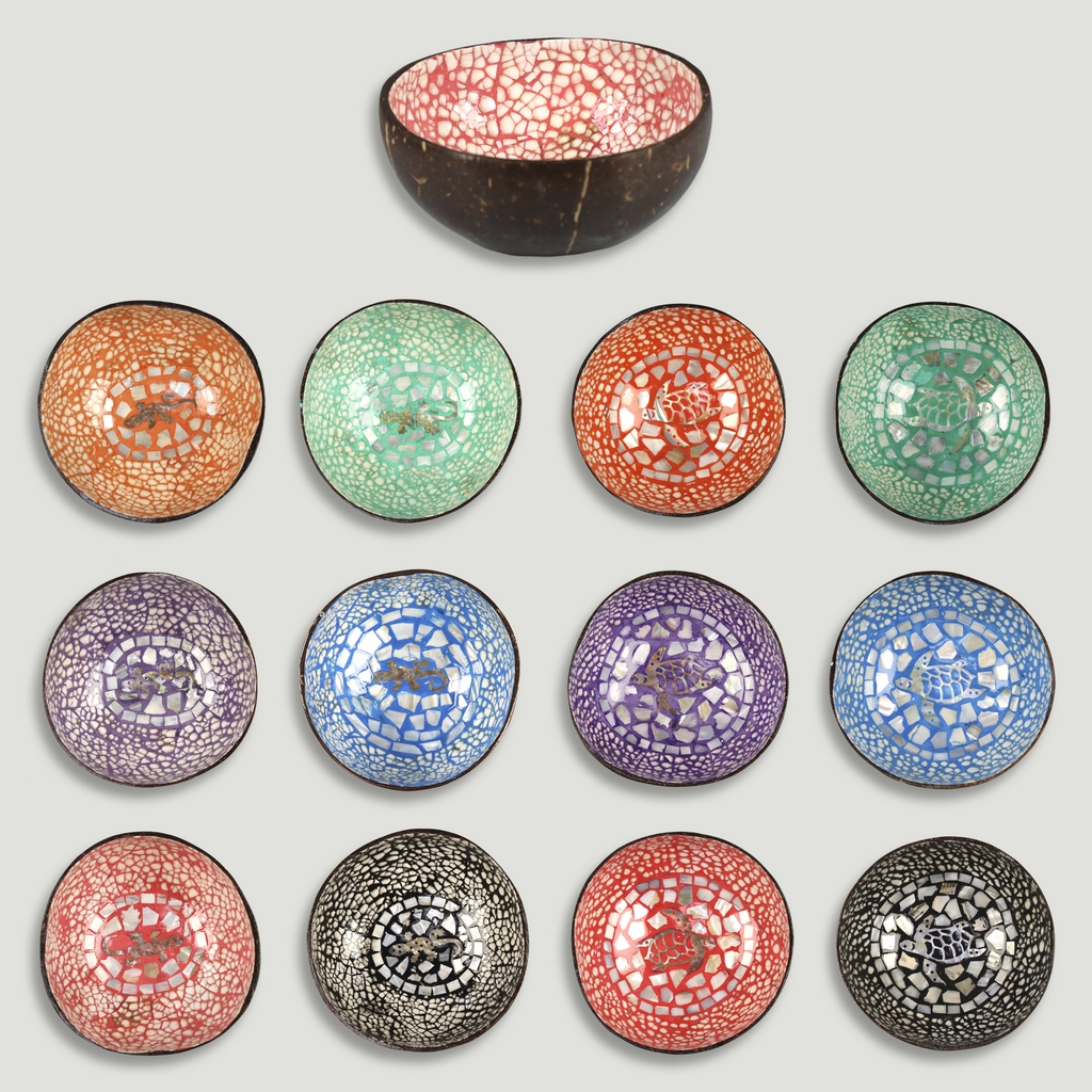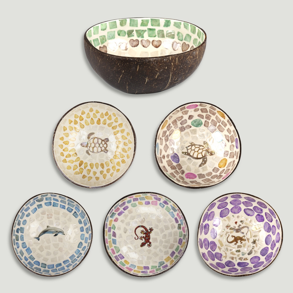 Material: coco en la parte exterior, interior de incrustaciones en nácar.