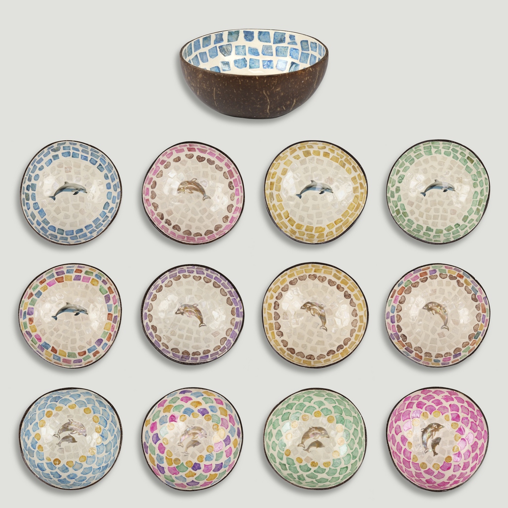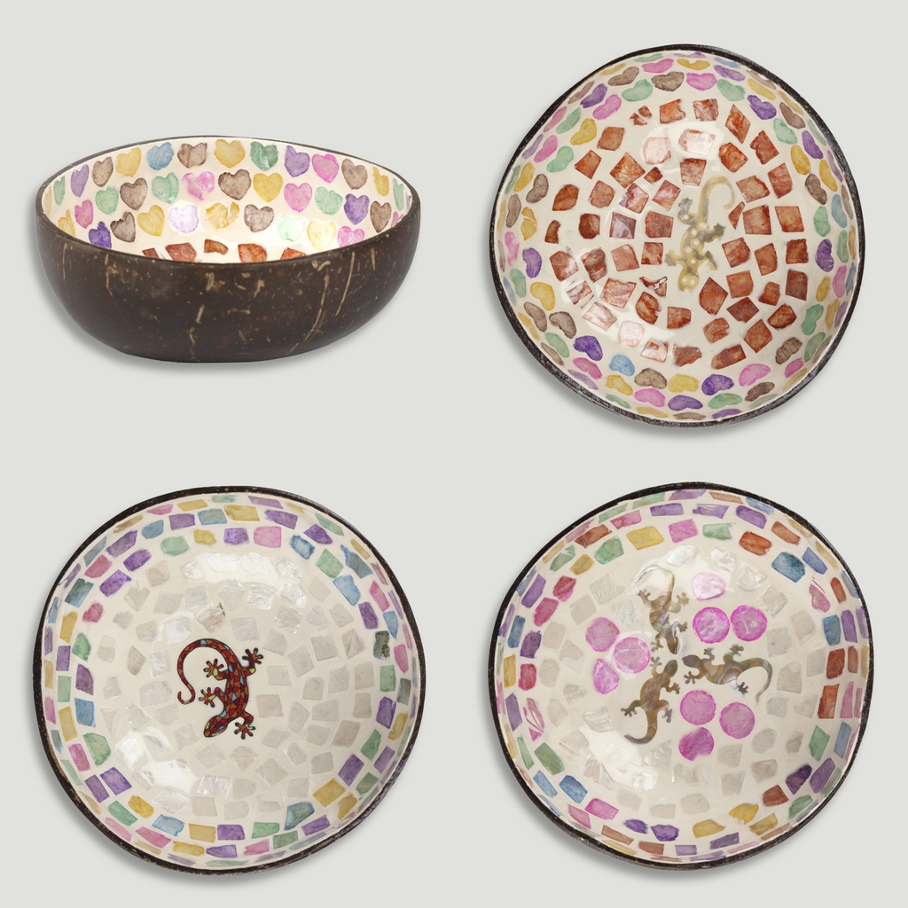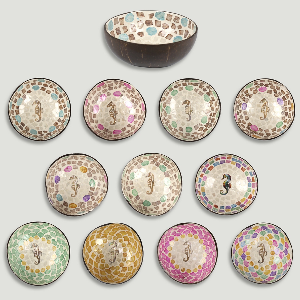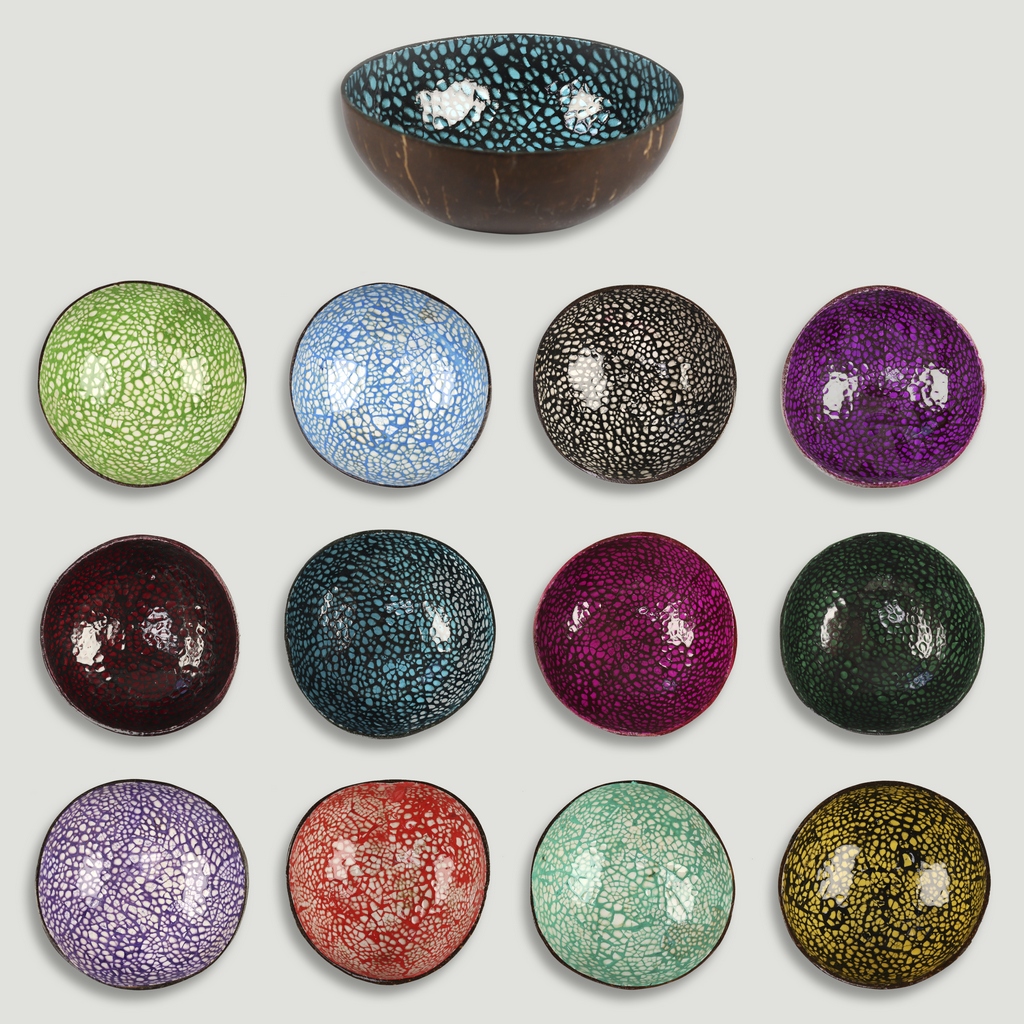 Material: coco en la parte exterior, interior de incrustaciones en nácar.