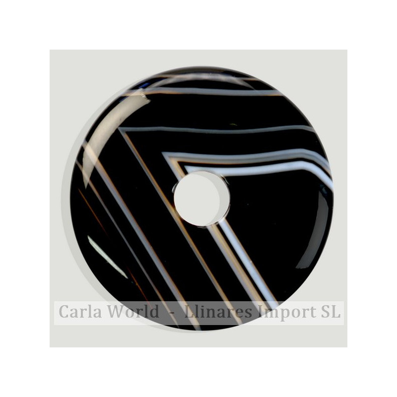 Colgante disco. 40mm. Ágata negra bandeada