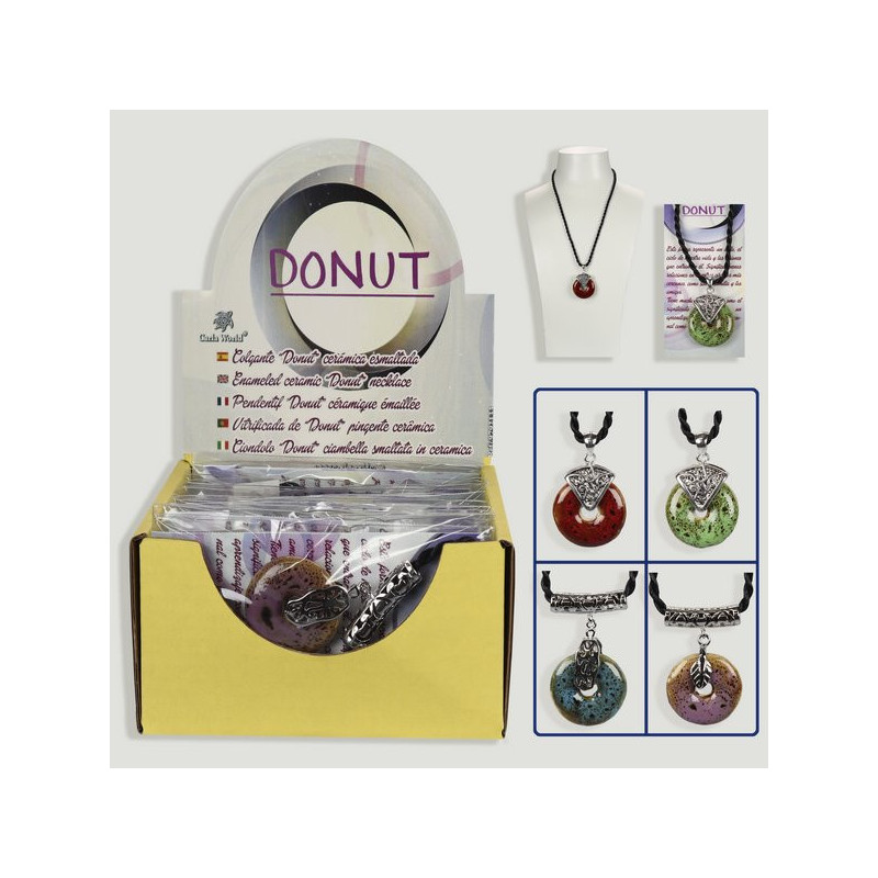 Colgante silver plated de Disco de cerámica esmaltada con cordón.