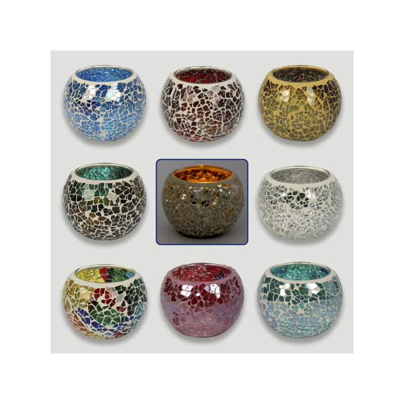 Portavelas mosaico 6,5x6,5x5,5cm. Precio por unidad. Mínimo y envío 8 unidades.