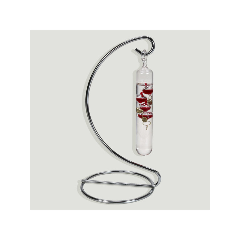 Termómetro cristal Galileo con pie metal. 12x24cm