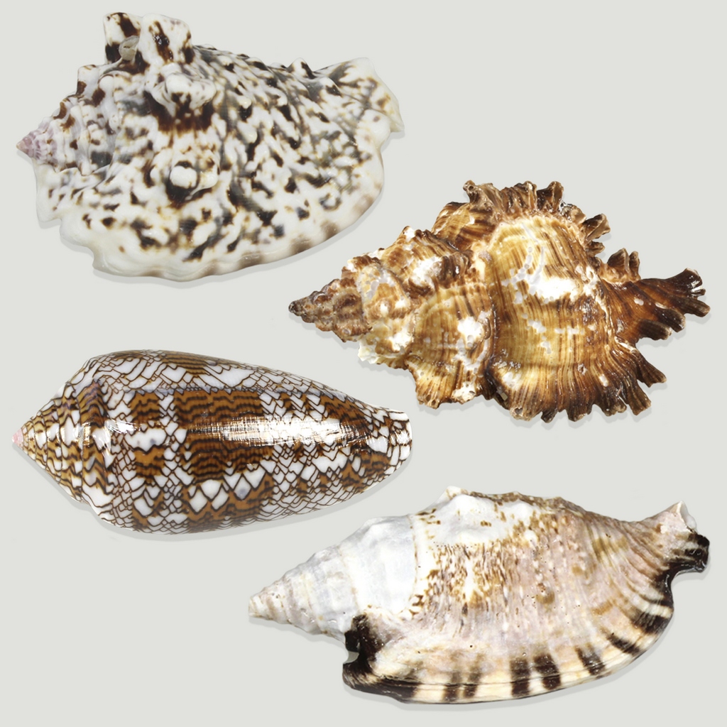Especie: Murex Chicoreus, Conus textile, Strombus aratrum y Strombus lentiginousus,surtidas.