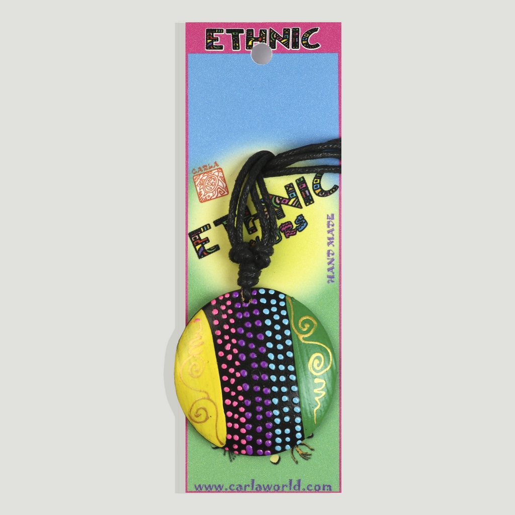 Colgante madera pintada. 55. Redondo puntos tribal