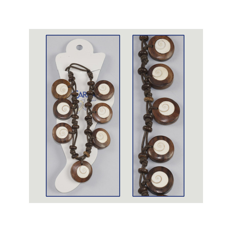 Tobillera abalorios. 75. Ojos de shiva madera. Surtidas