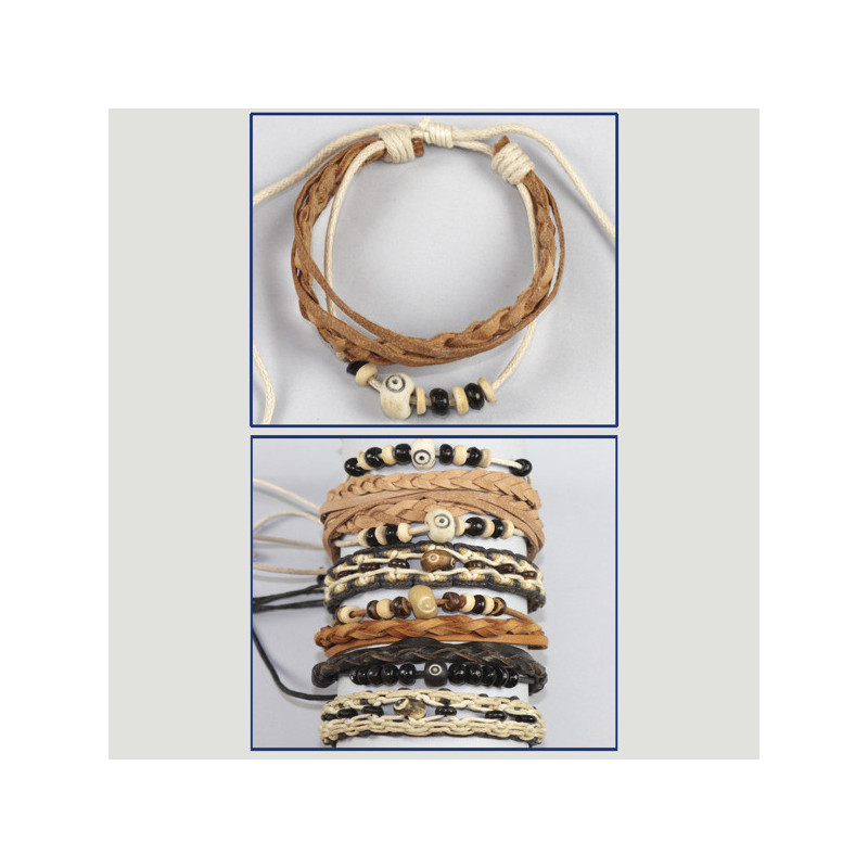 Pulsera ajustable. 09. Varias vueltas + madera. Surtidas