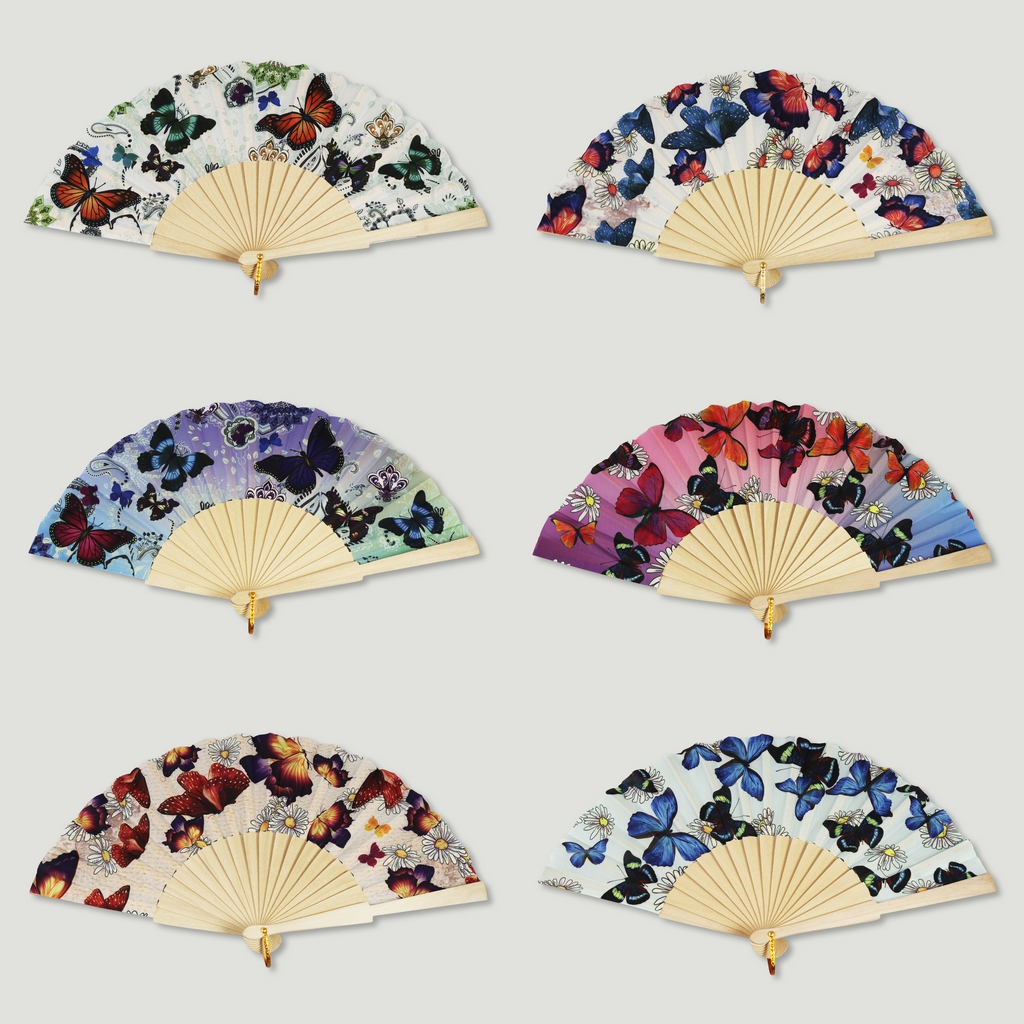 Abanico madera. 14. Modelo Mariposas. Surtidos