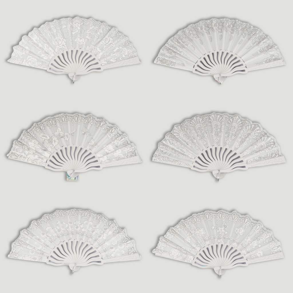 Abanico plástico. 56. Modelo Blanco con relieve plateado. Surtidos