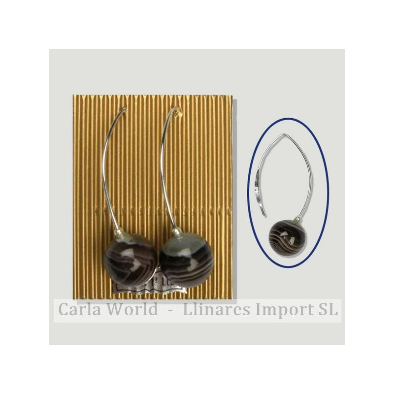 Pendientes colgantes con bola de mineral natural y gancho Pez de plata 925. Diseño sencillo y elegante que resalta la belleza del mineral.