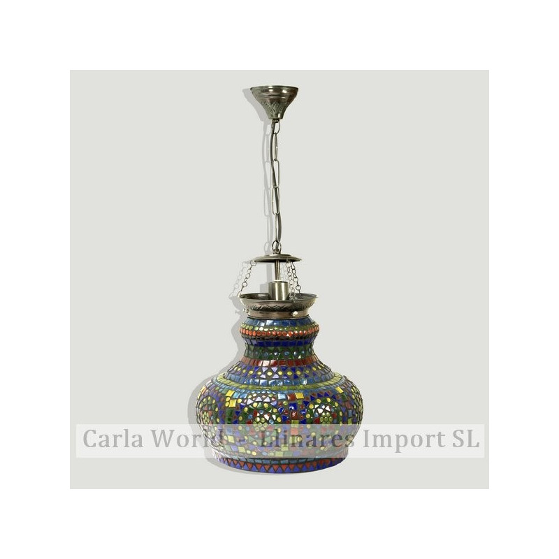 Lampara Techo de la India. Material de teselas de cristal de colores formando un mosaico. Color fondo NEGRO. 30cm. Precio por unidad. Mínimo y envío 2 unidades