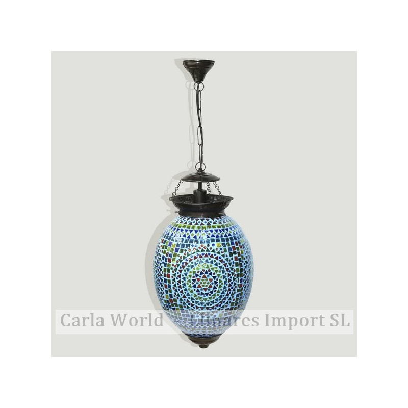 Lampara Techo de la India. Material de teselas de cristal de colores formando un mosaico. Color fondo TURQUESA. 40cm. Precio, mínimo y envío 1 unidad unidades